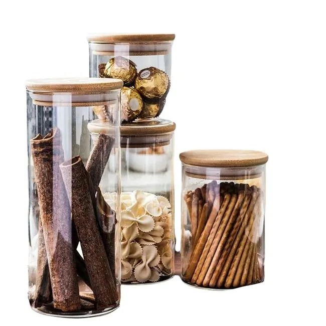 Frasco de vidrio borosilicato con tapa hermética de Bambú.